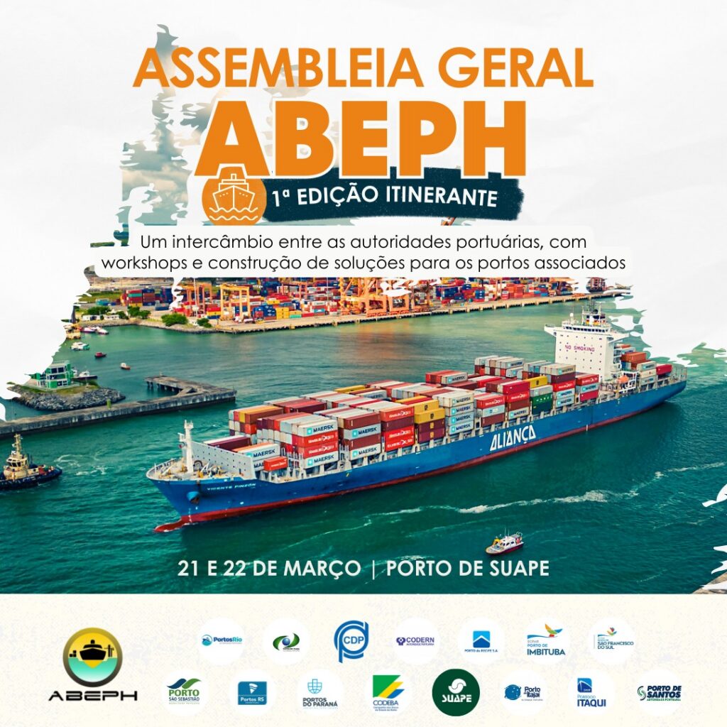 A ABEPH (Associação Brasileira das Entidades Portuárias e Hidroviárias) promove nos dias 21 e 22 de março a primeira edição da Assembleia Geral itinerante, que será realizada no Porto de Suape (PE). O evento contará com a participação do Ministro de Portos e Aeroportos, Silvio Costa Filho, do Secretário Nacional de Portos, Alex Ávila, do Diretor-Geral da Antaq, Eduardo Nery, e dos Diretores da Antaq Caio Farias e Alber Furtado. Esta é a primeira vez que a ABEPH fará uma Assembleia Geral itinerante, e com uma programação focada em atividades informativas e interativas. O primeiro dia de evento começa com a cerimônia de abertura, seguida pelo workshop sobre dragagem, com apresentações de empresas renomadas no setor, como DEME Group, DTA Engenharia e Jan De Null. No segundo dia de evento, os participantes terão a oportunidade de fazer uma visita técnica ao Complexo Industrial Portuário de Suape, seguida pela apresentação do Plano de Governo sobre dragagem, com representante do Ministério de Portos e Aeroportos. A realização da assembleia itinerante reforça o comprometimento da ABEPH em aprofundar o intercâmbio e o diálogo entre as autoridades portuárias associadas com o governo federal e agência reguladora no sentido de avançar conjuntamente na solução dos desafios enfrentados pelo setor portuário.