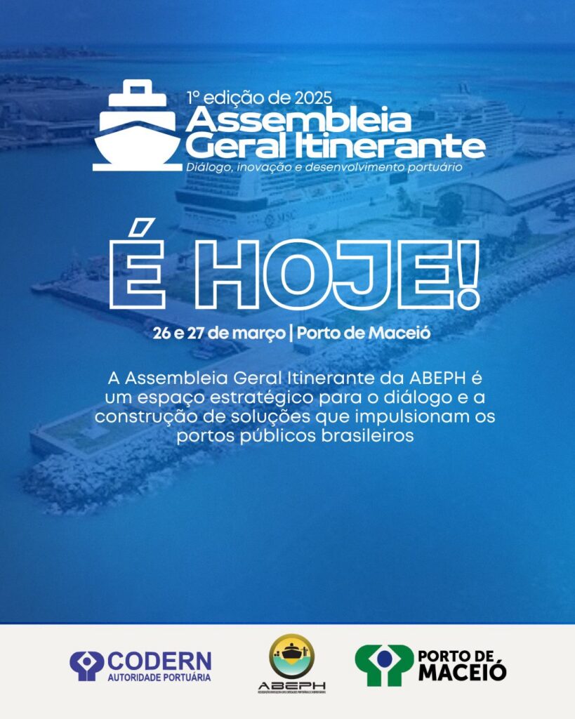 Assembleia Geral Itinerante da ABEPH – Programação Oficial Nos dias 26 e 27 de março de 2025, o Porto de Maceió será o palco da 1ª edição da Assembleia Geral Itinerante da ABEPH, reunindo autoridades portuárias, especialistas do setor e representantes de órgãos reguladores para discutir temas estratégicos e promover a troca de experiências sobre os desafios e oportunidades do setor portuário brasileiro. Com uma programação diversificada, o evento contará com visita técnica, debates sobre sustentabilidade e cultura organizacional, além de um espaço exclusivo para deliberações da Assembleia Geral da ABEPH. Confira a agenda completa: 26 de março de 2025 – Quarta-feira ? Auditório da Administração do Porto de Maceió? Rua Sá e Albuquerque, S/N – Jaraguá, Maceió – AL 14h00 – 14h30 | Recepção dos participantes 14h30 – 16h00 | Visita técnica às instalações do Porto de Maceió (saída de ônibus da Administração do Porto) 16h00 – 17h00 | Coffee Break 17h00 – 18h00 | Assembleia Geral da ABEPH (reunião exclusiva para portos associados) 27 de março de 2025 – Quinta-feira ? Terminal de Passageiros do Porto de Maceió? Rua Sá e Albuquerque, S/N – Jaraguá, Maceió – AL 09h00 – 09h30 | Recepção dos participantes 09h30 – 10h00 | Sessão de abertura Painéis e Palestras ? 10h00 – 10h40 | Descarbonização de Portos: Atualizações e Tendências Futuras? Palestrante: Luane Lemos ? 10h40 – 11h20 | Construindo uma Cultura Organizacional Sustentável? Palestrante: Sérgio Cutrim ? 11h20 – 12h00 | Agenda Ambiental da Agência Nacional de Transportes Aquaviários? Palestrante: Uirá Cavalcante Oliveira Encerramento 12h00 | Falas de encerramento 12h30 | Almoço de encerramento no Restaurante Picuí (deslocamento de ônibus a partir da Administração do Porto de Maceió) A Assembleia Geral Itinerante da ABEPH reforça o compromisso da associação em promover um setor portuário mais inovador, sustentável e eficiente, proporcionando um ambiente de discussão qualificado para os principais agentes do setor. ? Nos vemos no Porto de Maceió! ?