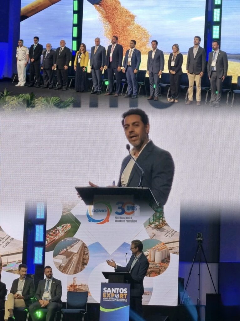 Na terça-feira (01), a ABEPH marcou presença no primeiro dia do Sudeste Export, realizado no Rio de Janeiro. Ao longo do dia, foram discutidos temas estratégicos para o setor portuário, com destaque para inovação e transformação digital na infraestrutura e logística. Na parte da noite, a Diretora Executiva da ABEPH, Gilmara Temóteo, e o Diretor-Presidente da PortosRio, Francisco Martins, participaram da solenidade de abertura. Durante seu discurso, Francisco Martins destacou a importância do Sudeste Export acontecer no Rio de Janeiro, especialmente neste momento em que a PortosRio tem apresentado resultados expressivos e avanços significativos. O evento segue com uma programação intensa, reunindo grandes nomes do setor para debater os desafios e oportunidades da infraestrutura portuária no Brasil.